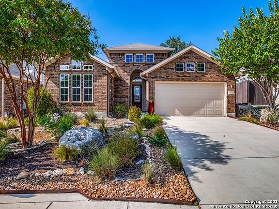 Open House this Sat 9/2/23from 10 to 12 Welcome to this stylish 1-story residence that combines modern design and warmth. With 3 bedrooms and 2 bathrooms, this home offers a blend of comfort and convenience that suits any lifestyle. The attractive front yard boasts mature Xeriscape with native drought-resistant trees and plants. Inside is an open concept design with high ceilings, architectural features, and tile and wood flooring. Windows throughout allow abundant natural light and views of surrounding greenery including a 200-year-old oak tree that graces the backyard with beauty and shade. The well-designed kitchen features large granite counters, stainless steel appliances, Reverse Osmosis drinking water, and ample storage. The interior plumbing of the home is equipped with an Aqua Pro Elite 5-Stage Water Refinement System, which goes beyond water softening to remove both minerals and contaminants, providing the highest level of residential water quality. The spacious primary bedroom is a retreat in itself, with tranquil tree views, an en suite bath featuring dual vanities and a separate tub and shower, and an impressive walk-in closet. This conveniently located home is adjacent to the exclusive Dominion area, within the highly ranked Northside Independent School District, and an easy commute to major employers and popular destinations in San Antonio.