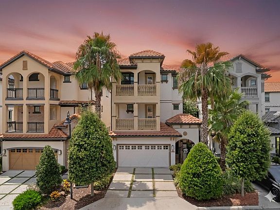 Luxury Lakefront Living in the Heart of Dr. Phillips. Welcome to Lakeside at Toscana, an exclusive gated community nestled along the tranquil shores of Spring Lake. This exceptional three-story lakefront estate offers 6 bedrooms, 6 bathrooms, and panoramic water views from every level. Unwind each evening with a breathtaking sunset, as you take in the peaceful sights and sounds of the wildlife. The dramatic two-story foyer sets the tone with sweeping views of the infinity-edge heated saltwater pool, tiered lanai, and tranquil lake beyond. Both elegant staircases and a private elevator connect all three levels. The gourmet kitchen is a chef’s dream, featuring quartz countertops, a spacious island with breakfast bar, gas range with pot filler, JennAir appliances, custom cabinetry, an eat-in nook, formal dining room, and a walk-in pantry with a second refrigerator. The first floor also offers a spacious great room, guest bedroom, and a full bath. On the second floor, you'll find three generously sized bedrooms, a living area, and a balcony overlooking Spring Lake—perfect for enjoying serene morning views or Disney Fireworks. This level also features a dedicated laundry room for added convenience. The third floor serves as your private retreat, featuring two luxurious primary suites designed for comfort and privacy. Each suite includes a spacious en-suite bathroom with dual vanities, a garden tub, and a separate walk-in shower. One suite enjoys a private balcony with tranquil lake views, while the other overlooks the picturesque neighborhood—perfect for enjoying peaceful mornings or quiet evenings. A second laundry room is also located on this level for added functionality. Thoughtful upgrades throughout the home include lush bamboo landscaping for enhanced privacy, Hunter Douglas electric shades, hurricane-rated doors, smart wiring, and an EV charger in the garage. All of the walk-in closets are custom-built with ample storage. Additional features include three recently serviced A/C units with a transferable service agreement and a removable pool safety fence for added peace of mind. Residents enjoy resort-style amenities including a community pool, fitness center, and maintenance-free landscaping. Ideally located near I-4, Restaurant Row, Universal, SeaWorld, and Disney, this home delivers the perfect blend of luxury, location, and lifestyle. Schedule your private tour today—this extraordinary lakefront home won’t last long!