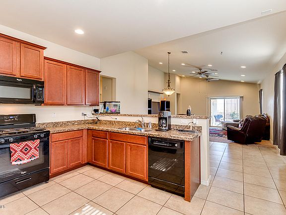 Former Model Home with Granite Counters in the kitchen Great Room floor plan. 3 bed plus Den. 18'' Tile floors. Synthetic Grass back yard. Mountain View with no neighbor behind. Separate Shower and tub in Master, split floor plan. ceramic tile throughout home. Indian Res behind home. On going class action law suit with builder for some minor repairs touch up paint and filling gap on stucco on some windows on home, new buyer can join at no cost.