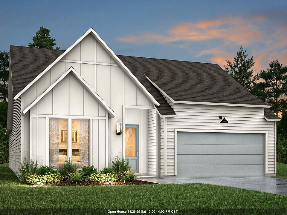 The Erie model, a 4 bedrooms, 2 bathrooms, home within the serene landscape of River Hills Farms just off Nicholson Rd. A single-story layout, this home boasts expansive living spaces, with lofty 12-foot ceilings. Step inside to adjacent living and dining areas, adorned with a wall of windows to the backyard. Luxury LVT floors and oversized ceramic tiles in the living areas with plush carpeting in the bedrooms. Dazzling gourmet kitchen with attached keeping area, a chef's island, and top-of-the-line GE stainless steel smart appliances, including a gas cooktop and a separate wall oven. Ample storage is provided by the walk-in pantry. Retreat to the primary suite with en-suite bathroom, complete with dual vanities, a spacious walk-in shower, a relaxing garden tub, a water closet, and a generously sized walk-in closet. Throughout the home 3cm granite countertops graces both the kitchen and all bathrooms. Upgrades: Upgrade Carpet to Vinyl LV2: (Primary BR+Closet/BR2/BR3/BR4) LV3 Tile LV2 Gourmet Kitchen w/ Vent Hood LV2 Granite Cabinets to the Ceiling LV3 Tiled Shower with Frameless Door LV2 Cabinet Hardware LV2 Lighting Package
