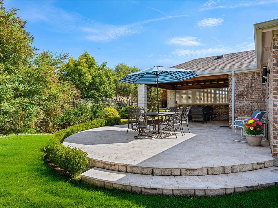 Step into elegance and comfort with this beautifully appointed home located on an oversized homesite near the North Amenity Center at 55+ Frisco Lakes. This Taft Street floorplan, built in 2015, is designed for both relaxation and entertaining. The expansive covered patio, finished in timeless travertine tile, provides the perfect setting for outdoor gatherings while enjoying the privacy of lush, mature landscaping. Inside, you’ll find hardwood floors throughout, plantation shutters, granite countertops, tray ceilings, French doors, and a huge sunroom filled with natural light. This home effortlessly combines luxury finishes with thoughtful design, creating a warm and inviting retreat. Frisco Lakes delivers the resort lifestyle you've dreamed of with access to three exclusive state-of-the-art amenity centers, indoor and outdoor pools for year-round enjoyment, three fitness centers, tennis and pickleball courts, scenic lakeside walking trails along Lake Lewisville, an onsite restaurant bar and grill, an 18-hole golf course, and vibrant social scene with over 150 clubs and activities to explore!
