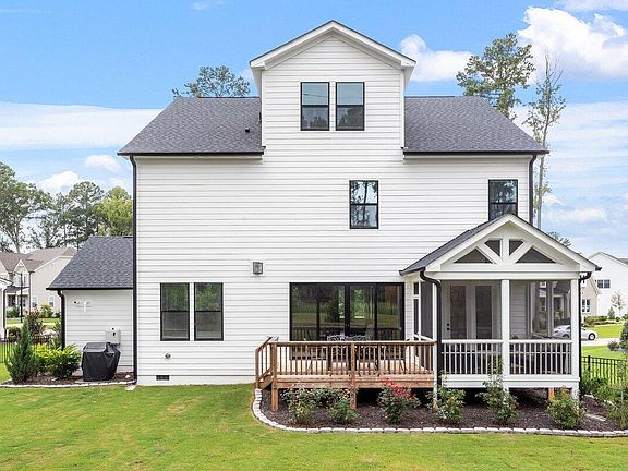 This beautifully designed and meticulously maintained, exceptional 4,397-square-foot, three-story home features six bedrooms, 5.1 bathrooms, multiple living areas, and a 3-car garage. Designed for everyday comfort and effortless entertaining, this lovely home features an inviting oversized covered front porch, open-concept living and bedroom spaces, and an abundance of natural light. The show-stopping chef's kitchen showcases Quartz countertops, an oversized island, stacked soft-close cabinetry, premium appliances, and a walk-in pantry. A private main-level guest suite provides ideal flexibility for visitors or multi-generational living. Upstairs, the luxurious primary suite features an en-suite spa-like bath with dual vanities, a soaking tub, a walk-in shower, and custom-built-ins! Three additional bedrooms and a versatile private flex room (currently used as an office) complete the second floor. The third floor features a sixth bedroom, a full bath, and a spacious game room. Enjoy seamless indoor-outdoor living with expanded sliding doors that lead to a screened porch and an extended deck overlooking the large, fenced yard with peaceful greenbelt views—perfect for entertaining or relaxing year-round. Living in Hasentree means access to world-class amenities, including a Tom Fazio-designed golf course, resort-style pools, a state-of-the-art fitness center featuring Technogym equipment, spa services, tennis and pickleball courts, on-site dining, scenic walking trails, a serene lake, a playground, a Child Development Center, and more.