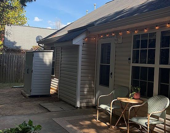 Welcome home to this wonderfully maintained home in Kings Creek! This 3 bedroom, 2 full bathroom home features newly updated LVP flooring throughout (2023), fresh paint throughout, and a newer (2016) HVAC and thermostat. Washer and dryer purchased in 2023 as well as an outdoor shed purchased in 2025. Fantastic vaulted ceiling and gas log fireplace in the great room/kitchen/dining area which flows out to the patio and private back yard. Primary suite features a tray ceiling, his and hers closets -- primary bath has shower and garden tub. Split floorplan with the secondary bedrooms and 2nd bath on the other side of the home. Convenient location with quick access to I-77 and 485 and just 10 minutes to South End, Southpark, Ballantyne, Steel Creek, and more. Owner occupants only as the rental cap has been met. Showings by appointment only.