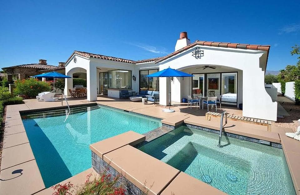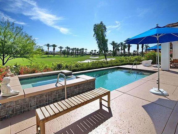 Nestled inside the prestigious Toscana Country Club, this beautifully remodeled home offers breathtaking views from its prime position on the 2nd hole of the Jack Nicklaus Signature South Course. Thoughtfully upgraded in March 2020 with approximately $250,000 in enhancements, this residence seamlessly blends timeless elegance with modern luxury. Follow the charming brick walkways through a cozy courtyard into a spacious great room featuring stunning stone flooring and custom built-in shelving. The gourmet kitchen is a chef's dream, showcasing gorgeous granite countertops and top-of-the-line Miele appliances--including a dishwasher, washer, dryer, and wine cooler. The master suite serves as a serene retreat, complete with a spa-inspired bath and large soaking tub. Two guest bedrooms, each with en-suite baths, and a private casita offer privacy and comfort for family and visitors alike. Major upgrades include an all-new A/C system, tankless water heater, updated walls and floors, custom shutters, a new entrance door, and a state-of-the-art alarm system. Outdoors, the resort-style living continues with a sparkling pool and spa, built-in BBQ, natural gas fire pit, new exterior sconces and lighting, and refreshed landscaping with upgraded irrigation. The patio and pool deck have also been resurfaced and repainted for a clean, modern finish. This exceptional home is move-in ready and perfectly positioned for refined desert living with sweeping fairway views.