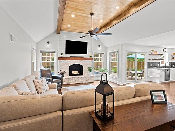 Price Improvement! Beautifully Remodeled Ranch in Sought-After Brookridge Estates – First Time on the Market in 20 Years! Welcome to this spacious and impeccably maintained 4-bedroom, 2.5-bath ranch home in the highly desirable Brookridge Estates. Thoughtfully updated throughout, this home seamlessly blends modern upgrades with timeless charm. The heart of the home is the stunning remodeled kitchen, featuring quartz countertops, custom cabinetry, new sink, backsplash and SS appliances. Gleaming hardwood floors flow throughout the main level, complementing the bright and airy family room with its vaulted ceiling, cozy fireplace, and an abundance of natural light. All four bedrooms are generously sized and located on the main level, each offering ample closet space. The bathrooms have been beautifully remodeled with high-end finishes and attention to detail. The finished lower level adds even more living space with LVP flooring, a spacious rec room, bar, convenient half bath, and a large storage room. Major system updates offer peace of mind for years to come: new roof (2022), new furnace (2022), new water heater (2024), new windows/sliding door and James Hardie lap siding on the front of the home. An in-ground sprinkler system keeps the professional landscaping lush and green. Step outside to your private backyard oasis – perfect for entertaining – with a saltwater pool, manicured landscaping, and a privacy fence creating a true resort-like setting. This is a rare opportunity to own a move-in ready home ideally located near shops, restaurants, Brookridge Golf Course, top rated Shawnee Mission Schools and easy highway access. Don’t miss it!
