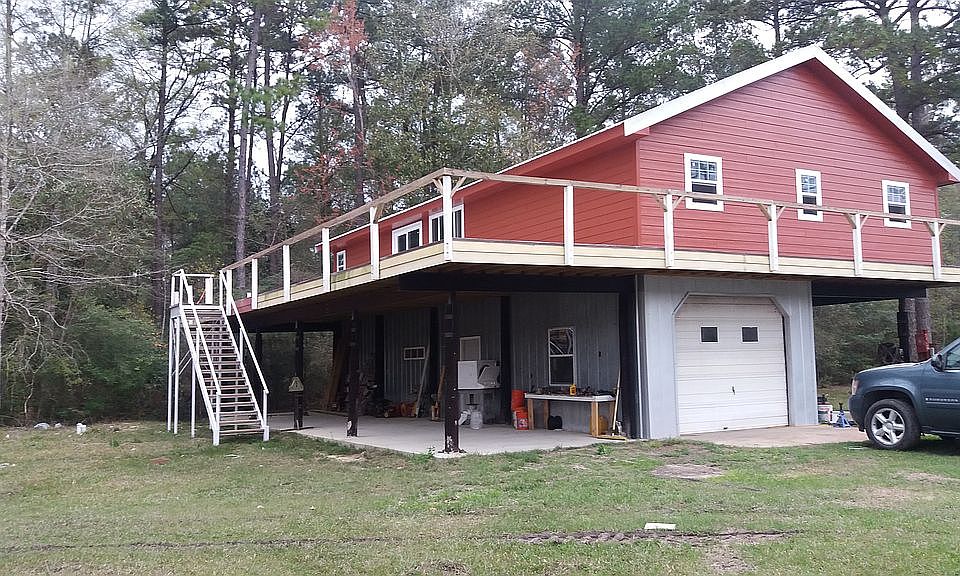 Unfinished Second Floor barn home. Bring your own dream plans to design this blank slate into your dream home. This home has an open floor plan, with 3 bedrooms, possibly 4th bedroom downstairs, and 2 baths. Large outside deck that wraps mostly around the house, with an extra entrance from the master bedroom. First floor Garage/work room, man cave or woman cave in-law suit( or 4th bdrm), and laundry room. The home also comes with a 540 sq ft shed, Blueberry bushes, fig trees, Lemon trees, Persimmon, and lots of wild blackberries. There is also a chicken coop that needs some work, but is usable. There is a small wooded portion at the beginning of the property for privacy. Live in the 3bd 2bth trailer while you complete the home. All of this comes on 6.27 acres. Plus great neighbors. More pictures soon to come!