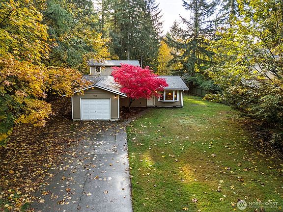 Welcome to this beautifully refreshed 3-bedroom, 1.75-bath Sunwood Lakes home surrounded by lush PNW scenery. Step inside to a bright, inviting layout featuring fresh interior updates, paint, and a kitchen with a clean, modern feel that blends warmth and functionality. The open flow creates comfortable living and dining spaces, while the upstairs loft offers flexibility for a second living area, playroom, or home office. Outside, the backyard is a true retreat—multiple decks and a peaceful patio area with fire pit among the trees create the perfect space to relax or entertain. HOA covers water bill. Enjoy community amenities including a pool, clubhouse, tennis courts, & trail, all just minutes from shopping, schools, and I-5 access.