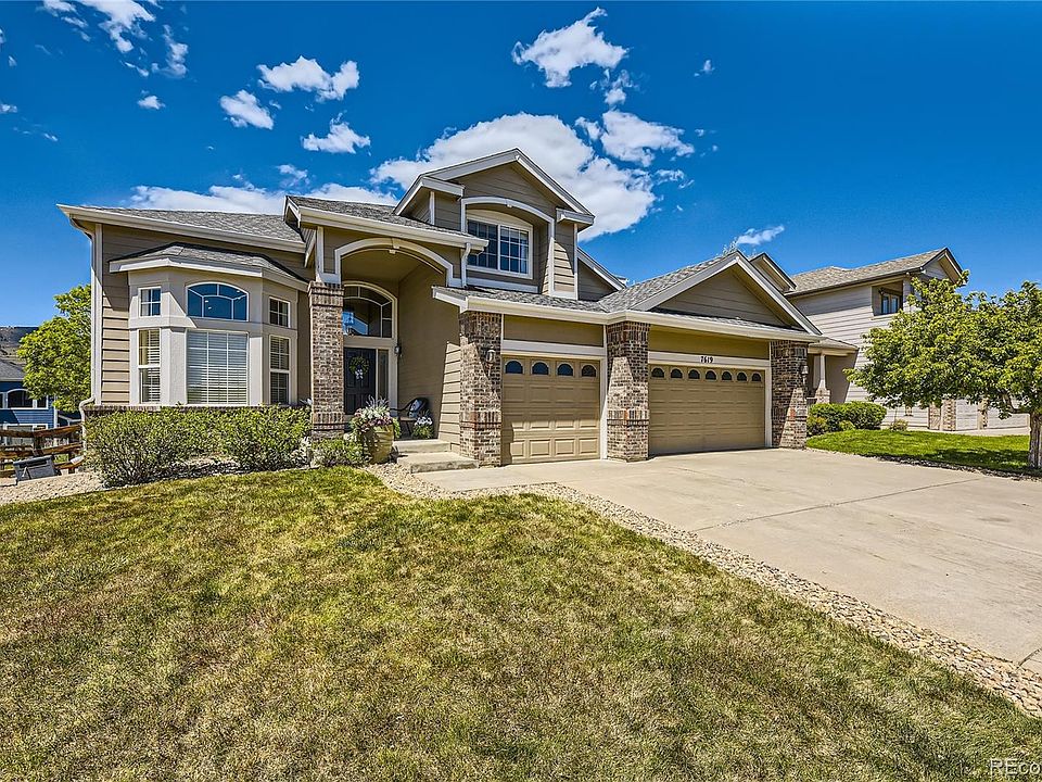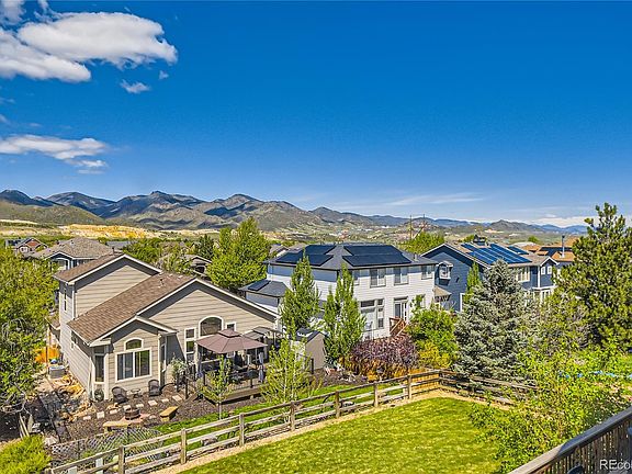 OWN YOUR SLICE OF PARADISE IN ROXBOROUGH! This most popular DR Horton New Haven 2-story with a main level primary bedroom is available now as a resale! The home is bright, light and airy and features soaring ceilings with panoramic views. Every window is a picture and sunsets are brilliant! There are numerous architectural features and art niches through the home. Enter the front foyer to the formal living/dining room combo which flows into the eat-in kitchen and family room with a fireplace, perfect for intimate family gatherings or entertaining. The upper level has 3 bedrooms and a full bath. All hardwood floors were recently refinished and left natural in color. A laundry room with a utility sink is conveniently located on the main level. The walk-out basement is currently used as a workout area and for extra storage--it would be very easy to finish to expand the living space. A sump pump and radon system in the basement is in place. Don't miss the brand new expansive deck and newer HVAC system and other extras such as all stainless steel appliances, a jetted tub, ceiling fans, a smart thermostat with dual zones and Wyze video doorbell! The roof is approximately 4 years old and has a transferable warranty. A paved path across the street leads directly to Crystal Lake and the neighborhood playground/park. (Note the lake view from the upper girl's bedroom window.) This neighborhood is connected by trails to the basketball, tennis and pickleball courts, a skatepark and covered picnic areas. Residents can join Foothills Recreation Centers in Littleton for access to pools and many other amenities at a discounted rate. Drive approximately a mile and a half to Roxborough State Park and the award-winning golf course surrounded by gorgeous red rocks. Take a break to hike in the serenity of nature and abundant wildlife--truly heaven on earth! Showings begin May 25 (Saturday).