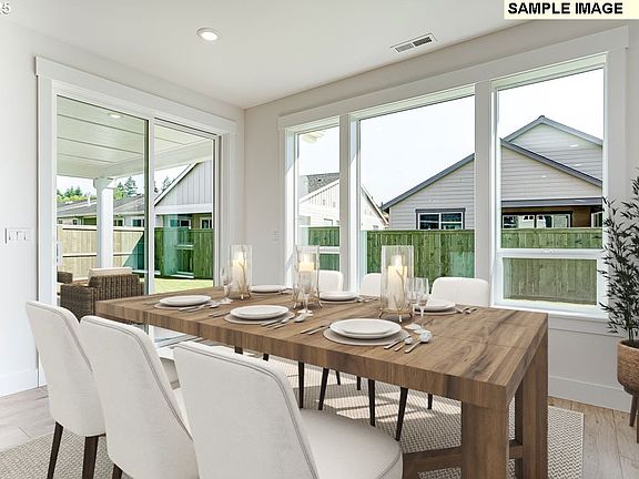 This traditionally designed home in South Hillsboro’s Butternut Creek built by Street of Dreams award winner, offers both comfort and convenience. With a front-facing garage and private finished backyard, it blends timeless architecture with practical living. Inside, coffered ceilings and large windows create an airy, inviting space filled with natural light. The gourmet kitchen features quartz countertops, a spacious island, and a full-height backsplash, seamlessly connecting to the great room and dining area—ideal for gatherings. Thoughtful details such as wide hallways and a walk-in pantry enhance everyday functionality, and luxury finishes are all included. You will have access to nature trails, dog parks, and new amenities like Market of Choice, The Reserve golf course, and local restaurants within blocks. The home is zoned for the new Tamarack Elementary School. Whether you're commuting to Portland or planning a weekend getaway to the Oregon Coast or wine country, this location offers exceptional access to it all. The community’s proximity to major employers, top-rated schools, and abundant recreational opportunities makes it a top choice for those seeking a well-balanced lifestyle in a vibrant and growing area. Sales office open Friday-Tuesday 11-5pm at 7372 SE Benedict St. Hillsboro, OR 97123