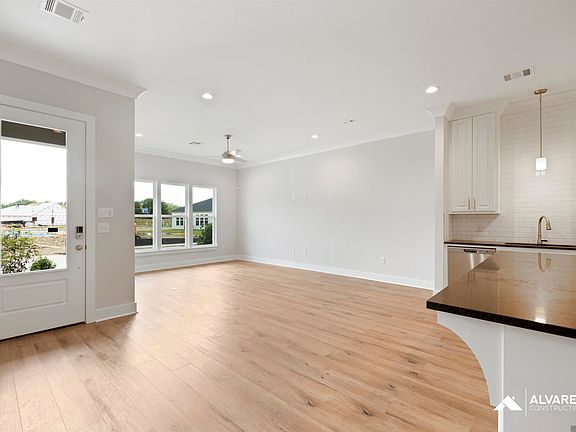 The Richmond plan is a 3bed/2bath single story home offering open and spacious living areas with 10' high ceilings. Adjacent living and dining areas are perfect for entertaining. Rigid Core SPC wood-look flooring throughout the home with carpet in the bedrooms. Gourmet kitchen features oversized chef's island, GE stainless steel smart appliances with gas cooktop and separate wall oven and full walk-in pantry. Master bedroom has en-suite bathroom with dual vanities, walk-in shower, garden tub and large walk-in closet. Includes a full size utility and added linen closets. 3cm granite counters in kitchen and all bath counters.