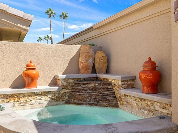 Welcome to this Jacaranda plan a beautiful two- bedroom, two- bathroom home perfectly positioned on the Golf Course of Palm Valley Country Club. Open floor plan with a great size kitchen which includes a large wine refrigerator. Relax and unwind in your tranquil front courtyard featuring a private spa and outdoor kitchen area, ideal for entertaining or simply enjoying the desert evenings. Take in the breathtaking sunset views from both the front courtyard and the back patio over looking the golf course. Whether you are looking for a full time residence, weekend getaway, or a space to host family and friends, this is a perfect fit. Palm Valley offers isa world-renowned for its extensive and beautiful amenities and vibrant and happy community atmosphere, perfect for all ages. The club features two championship Ted Robinson-designed golf courses that challenge even the most seasoned golfer. There are also 13 tennis courts, 12 pickleball courts, and memberships for golf , racquet sports, fitness center and spa. The Impressive clubhouse offers two restaurants, a lounge, a pro shop, a salon, spa, a junior Olympic size pool, and boast some of the most spectacular mountain view in the Coachella Valley. Its close to the World famous Indian wells tennis center where they play the BNP. Also close to our Rodeo drive of the desert the famous El Paseo full of amazing designer shops and fancy places to dine. call me today to view this beautiful home.