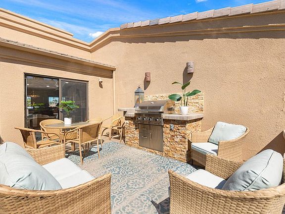 Golf courseTranquil front courtyardPrivate spaOpen floor planBreathtaking sunset viewsLarge wine refrigeratorOutdoor kitchen area