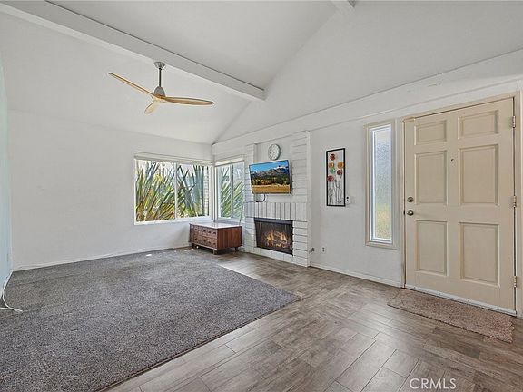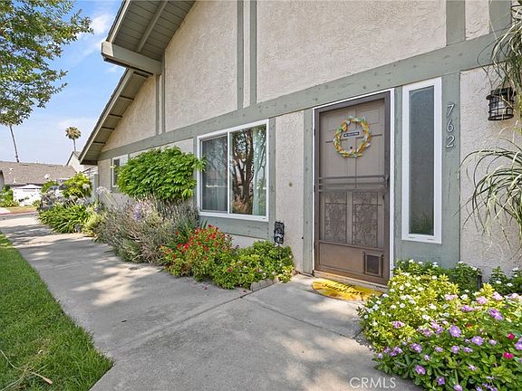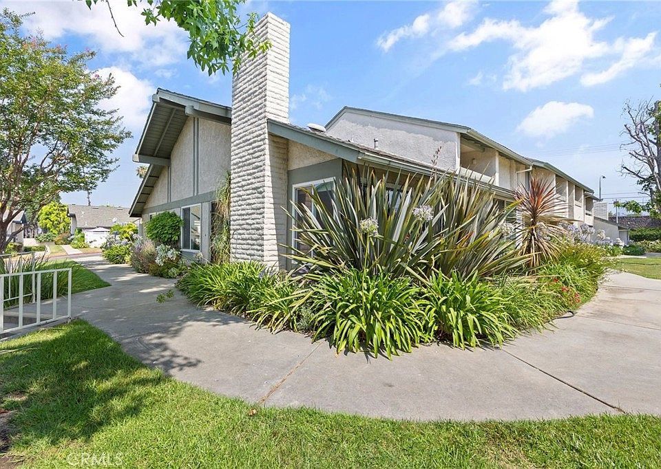 This is a great opportunity to move into this single-level end unit in Corsican Villas! It features 2 bedrooms, 2 bathrooms, an open floor plan with a fireplace in the living room, remodeled kitchen with granite countertops, ceramic tile flooring with carpet in the bedrooms, newer windows, ceiling fans, and textured ceilings. The 2nd bedroom includes a built-in Murphy Bed. There is a private Patio off the kitchen and master bedroom, inside laundry, and a 2-car garage. The community has two pools, a picnic area, Boat & RV Parking for a minimal fee, and beautifully maintained grounds. Located close to the Brea Mall and Downtown Brea with shopping and restaurants.
