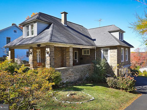 This is a wonderful, old stone home (1920) in a great location! The wrap around front porch leads to a spacious living room dining room combination. There is a bedroom on the first floor and bathroom with tub/shower. The kitchen is large with beautful knotty pine walls, has a built-in bench, deep windowsills and large windows. From the kitchen you step into a fantastic sunroom overlooking a beautiful view. Just the place to relax. The second level has a cozy loft area and two bedrooms. The loft would be a good area for an office or just hanging out. There is a full bathroom on this upper level. The hardwood floors under the carpet (except in the sunroom) are a plus. .The walk-out basement is very spacious, could easily be finished and leads to a patio. The attached garage, with access to the basement, is a plus! Located just a short distance from fast food dining or coffee and donuts that you can grab when running for the convenient bus or train. You do not want to miss this home. Showings by appt.