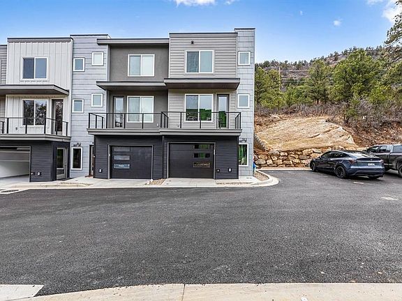 Completed in late 2025, this thoughtfully designed Etta Place townhome by Reynolds, Ash and Associates offers modern Durango living with custom enhancements beyond the original floorplan. Positioned as the southern corner unit along the ridge of Goeglein Gulch Road near Fort Lewis College, the home enjoys one fewer shared wall and exceptional southern exposure, filling the interior with natural light throughout the day. The residence features four bedrooms and three and a half baths, including a custom-built lower-level bedroom and ¾ bath—an upgrade that adds valuable flexibility for guests, remote work, or extended living. The lower level also includes an oversized one-car garage, mechanical room, and additional storage. The main level showcases an open-concept layout with sleek, modern finishes, a spacious kitchen with pantry, dining area, powder room, and a bright living space that opens to a private patio—ideal for indoor-outdoor living and entertaining. Upstairs, the thoughtfully arranged upper level includes a primary bedroom suite with a private ensuite bath, two additional bedrooms that share a well-appointed hall bath, and a conveniently located laundry area. Clean architectural lines and quality finishes continue throughout. All-electric and highly energy efficient, this turnkey townhome delivers contemporary mountain living in one of Durango’s most desirable in-town locations, with immediate access to trails, Fort Lewis College, and downtown Durango.
