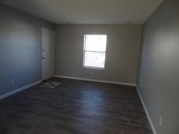 Freshly Painted, new flooring, light fixtures, 6 panel white doors, new trim, adult high vanity in bath and adult high toilet. Comes with all appliances and has a nice patio area for BBQ's. Complex has pool. All you need to get is electric and water in your name. Walking distance to walking trail. Owner is a Licensed Real Estate Agent. Main level no steps. Comes with washer , dryer refrigerator, stove, dishwasher. Living room Dining area galley kitchen and bedroom and laundry room in unit.
