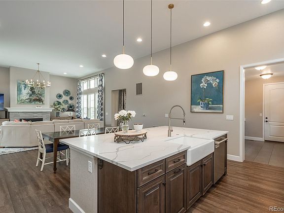 Beautiful Shea ranch style home situated on a LARGE lot with lush landscaping and stunning designer touches throughout. As you enter the home the large formal foyer leads to the open great room, dining room, and upgraded gourmet kitchen. Stunning kitchen with Calacatta quartz counters, farmhouse sink, and custom cabinets are a chefs delight. The main floor includes a primary bedroom with 5 piece bath and large custom closet, private bedroom with en-suite bath, a study, and laundry room with additional storage. The lower level is complete with a spacious great room, 2 private guest suites, 3/4 bath, and a huge storage area. Great price for a Backcountry home with this lot size and finishes! In the winter the HOA will shovel your driveway and to your front door. Walk to the park and enjoy concerts and food trucks! Love the lifestyle of beautiful BackCountry with extensive trail system, clubhouse with dining, work out facility, amphitheater, resort style pools, parks, ponds, monthly events for all ages, and so much more.