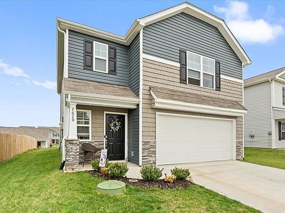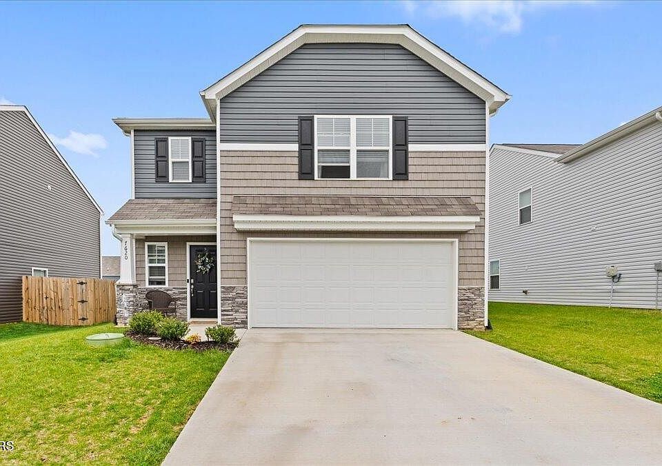 You've found your home at 7620 Bill Keaton Drive in Corryton, TN ! This charming nearly 1,900 sqft, two-story home offers modern comfort and inviting outdoor living. Start your mornings with a cup of coffee on the front porch while watching the sunrise. The exterior features beautiful stone shake and vinyl siding, adding to its curb appeal. Inside, a spacious open-concept layout with a seamless flow from the kitchen to the living area. The kitchen boasts elegant white cabinets, an island, pantry, and plenty of space for family gatherings. Step out onto the patio through the doors perfect for enjoying sunset views on warmer evenings. This home also features a smart technology security system for added peace of mind. The home includes a convenient half bath, a two-car garage, and a hall leading to the upstairs bedrooms. Upstairs, you'll find three generously sized bedrooms all great sizings and closet space, separated the primary suite offering privacy and ample closet space. The laundry room is also upstairs for added convenience. LED lighting throughout enhances the modern feel, and there's plenty of storage space throughout the home. The neighborhood offers a fantastic playground for the littles. Showings begin Friday, May 2, 2025. Don't miss your chance to make this wonderful home yours !