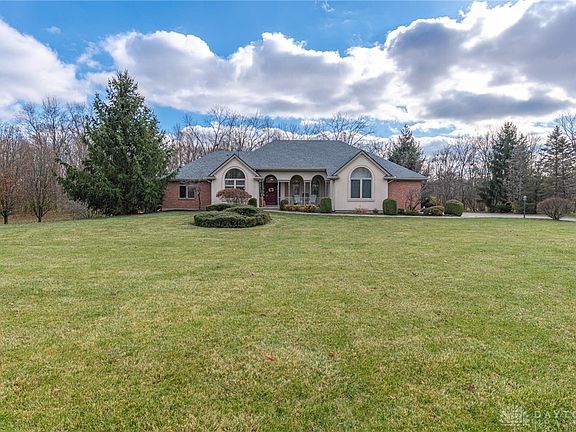 Welcome to your dream home nestled on a private lot with 2.43 acres of picturesque land, offering a perfect blend of luxury and tranquility. This Custom 5-bedroom, 4-bathroom ranch with walkout lower level features 4105 sf of spacious and thoughtfully designed interior but also breathtaking views that will leave you in awe. SPECIAL FEATURES: Hardwood floors, 11ft ceilings, custom arched doorways & Crestline windows. The covered porch leads to a spacious palladium window entry & is flanked by recessed ceiling, formal dining rm & a cathedral study with built-ins. The gathering room features a wall of windows & breathtaking views of the woods. The Kitchen is open to the family room & features a large island, double door pantry, Hickory cabinets & breakfast room with cathedral ceiling. A wide main floor hallway leads to 3 large bedrooms, 2 full baths & laundry room with sink/'. The primary bedroom has recessed ceiling & walk-in closet, French doors access ensuite bath with large tub, shower, tile & double vanities. There is also a guest bathroom on the main floor. The walkout lower level has 1200 sq ft of finished basement space, additional storage & workshop space. The 4th & 5th bedrooms have egress windows & share a full bath. Added bonus: 2nd kitchen with range, refrigerator & sink (perfect set-up for guests/in-laws). The rec area spans 43 ft, has floor to ceiling stone gas FP, & opens to the side patio. The 3 car garage has pull down attic storage, access door & wide apron driveway. The backyard is a wooded paradise showcasing a waterfall pond. Septic inspected 22", New Roof 22", Water Heater 17", Water softener 21", New furnace coils & heat pump installed 2010 (hybrid system).This property borders the Germantown Metropark Reserve and offers year round adventures with the perfect balance of seclusion and accessibility. Don't miss the opportunity to make this extraordinary property your own. Schedule a showing today and experience the lifestyle that awaits you.