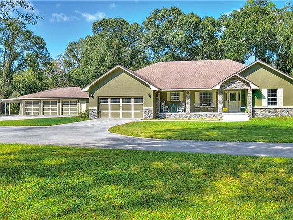 Here is your opportunity to own this one of a kind property with two immaculate homes and a large detached garage/workshop on a beautifully maintained 4.79 Acres. Main 4br/2ba home is 2,825 sq ft with an inviting front porch overlooking the property and attached 2 car garage. The updated spacious kitchen has wood cabinets, granite countertop, tile backsplash and stainless steel appliances. Open living area with vaulted ceilings offers plenty of space for entertaining. French doors lead from living area to bonus room with oversized walk in closet that can be used as a 4th bedroom or office. Master Bedroom has trey ceilings and hardwood floors, large walk in closet with lots of organization space. Luxurious Master Bathroom has dual sinks, garden tub, and large tiled walk-in shower. Security camera system included. Second 3br/2ba home is a completely renovated 1,152 sq ft mobile home, with newer bathrooms and kitchen. Wood cabinets and stainless steel appliances in updated kitchen. Screened front porch overlooks the firepit and scenic wooded areas. This extra home is perfect for extended family or as an income generating rental. Detached 3 car garage is 1,204 sq ft and has more than enough room for storage and workshop. Plenty of room for work space and to park your toys. Everything has been very well maintained and updated. This serene property nestled away from it all but close to everything is fenced and private with fire pit, wooded area, and lots of open space. Schedule your showing to see what this rare property has to offer.