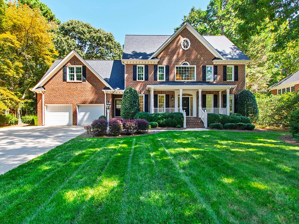 Welcome to this beautifully maintained home in highly desirable North Ridge Estates, just minutes from North Ridge Country Club. This classic two-story brick residence offers exceptional street appeal with enduring traditional style. Inside, you will find a versatile floor plan featuring primary bedroom options on both the main level and second floor, perfect for multi-generational living or flexible lifestyle needs. The heart of the home is the spacious open - concept kitchen and family room, ideal for entertaining and everyday living. Contributing to the openness is a bright and inviting sunroom over looking the private, landscaped rear yard, creating a peaceful indoor-outdoor connection. The second level primary suite features a spacious sleeping area, a cozy sitting area with fireplace and a bright bath featuring private toilets and vanities for each partner. Additional highlights include a two-car garage, a rec room with wet bar, walk-up stairs to an unfinished attic offering generous storage throughout, and a setting on a quiet, tree-lined street in one of Raleigh's most desirable neighborhoods. Additional highlights include a two-car garage, a rec room with wet bar, walk-up stairs to an unfinished attic offering generous storage throughout, and a setting on a quiet, tree-lined street in one of Raleigh's most desirable neighborhoods.