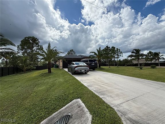 Peaceful, quiet and private on 1.25 acres fully fenced. Country living at it's best ! Horde friendly .This charming 3 bedroom plus a den , 2 bathrooms and a two car garage home all accentuated by high-end finishes, You have two entrances into the property through the two driveways . The front of the property is lined with palm trees and to give you the secluded feel pulling into the driveway. You are met with a lot of natural light with the spacious and open living room. These well-designed homes feature impact-resistant windows and doors for both storm protection and noise reduction, and concrete block construction. A unique opportunity! Home is featuring a stunning Property built. The master suite offers two walk-in closets, and a bright bathroom with a double vanity and a shower enclosure. Additional highlights include the kitchen with an island and pantry, stainless steel appliances. With no homeowner's association or restrictions, this property provides complete privacy. Embrace the tranquil lifestyle this exceptional home offers, where nature meets modern luxury.