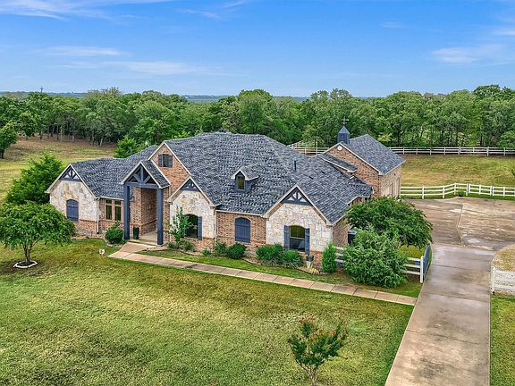 READY FOR NEW OWNER. Extraordinary 4-Acre Horse Property nestled in High Trinity Ridge Estates, Aubrey. Just North of Lake Lewisville and minutes from Denton, this immaculate 4-acre horse property is a rare find. Nearly 3,800sf of beautifully designed living space, main level features a spacious floor plan with four large bedrooms, office, living with vaulted ceiling & a fireplace. The open-concept kitchen is a chef's dream, breakfast bar, island, gas cooktop, & walk-in pantry. Upstairs, you'll find a large bonus-media room with plumbing ready for an additional bathroom, providing endless possibilities.Step outside to the covered patio, where a second fireplace & pool create the perfect setting for relaxation or entertaining guests. Horse enthusiasts will appreciate the sandy loam soil, loafing shed, and a top-notch four-stall barn, along with covered trailer parking, a riding pad, and spacious pastures.Located in the desirable Aubrey ISD, this property offers easy access to Highway 380, I-35, and Denton. LOOK AT THIS PRICE