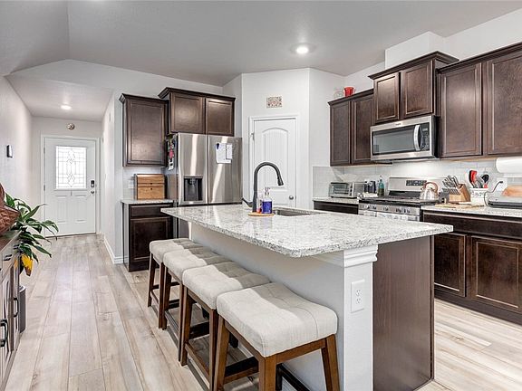 Built in 2024 by D.R. Horton, this beautifully maintained 3-bedroom, 2-bath home blends new-construction appeal with thoughtful upgrades you won’t find in standard builder models. Step inside the open-concept floor plan filled with natural light and enjoy the seamless flow between the kitchen, dining, and living areas, perfect for entertaining or cozy nights in. The kitchen features stainless steel Whirlpool appliances, a built-in microwave, and a dishwasher ready for everyday convenience. The primary suite offers a spacious walk-in shower and an L-shaped closet designed for easy organization. Throughout the home, you’ll find upgraded fixtures, ceiling fans, and modern hardware that add a refined touch. The 2-car garage has been finished with epoxy flooring, giving it a clean, polished look that’s both functional and stylish. Outside, enjoy a low-maintenance backyard complete with a 7x7 storage shed, extended fencing for added privacy (perfect for pets or trash bin storage), and in the front, landscaped flower beds with rubber mulch that stay tidy year-round. Security and peace of mind come easy with a full ADT system including cameras, sensors, and a smart key entry. Plus, reflective window film on several windows offers extra privacy and energy efficiency. Save time and money with all the post-build improvements already done for you, just move in and relax! Schedule your viewing TODAY!
