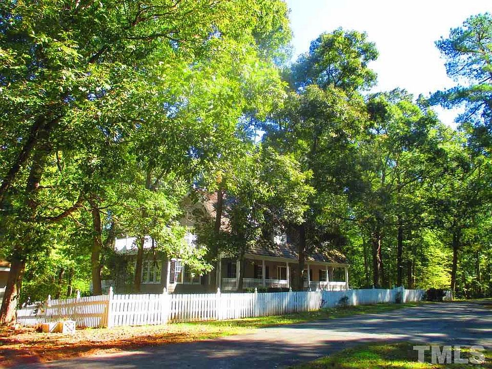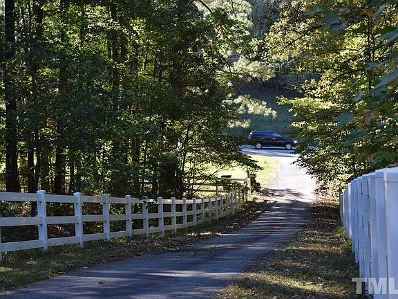 Good location off Hwy 98, Easily accessible to Durham, Raleigh Walk out basement, 2 detached garages, one next to house (2 bays), one near pond (4 bays), outbuildings, shelter, stocked pond, paved driveways, board fencing-pasture and grounds, former Yates' Baptist Children's Camp, house built on foundation of original lodge, historical log cabin, adjoins Falls Lake on entire north and west boundaries, near Hope Reins Facility, recorded as two tax parcels