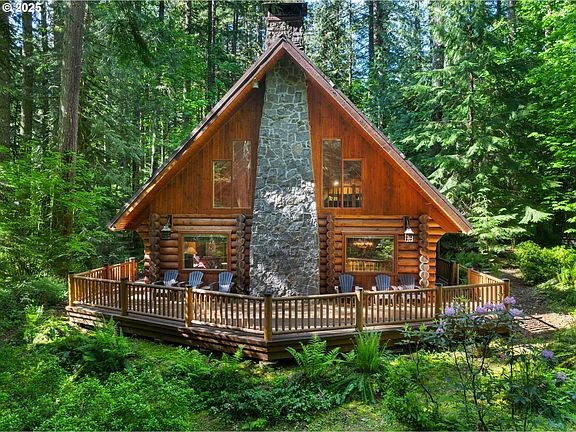 One of a kind and rarely available, check out this stunning two story log cabin in the woods along charming Camp Creek. Located in the Mt. Hood National Forest, this cabin is on a plowed road in winter and only about 10 minutes to the slopes! With four spacious bedrooms and two full bathrooms, there’s room to comfortably sleep a crowd—ideal for two families or a group of friends. The great room has a striking rock fireplace with soaring vaulted knotty pine ceilings. Originally constructed in 1990, this cabin has craftsmanship you just don’t find anymore. I love the wrap around deck, with many covered areas, that completes the exterior package. This cabin has been well maintained and well loved by the sellers. Imagine the fun times you’ll have with summer barbecues after a day of hiking on Mt. Hood over looking Camp Creek. It’s also one of the most kid and dog friendly creeks on the mountain for taking a summer dip. This kitchen is designed with plenty of cabinets and the island is centered so the chef doesn’t miss any of the action. The dining room is steps away to the deck and gives easy access for steaks on the barbie.There’s two bedrooms on the main level. Upstairs, a loft overlooks the living room and provides additional sleeping space. Two more bedrooms with multiple beds are upstairs with a bathroom to share. A laundry area and mudroom/entry on the main level make it easy to manage gear and wet clothes after a day on the mountain. Bonus outbuilding for easily storing wood, workshop, outdoor furniture and mountain toys. The cabin is on septic recently pumped and inspected with flying colors. It’s serviced by a community water system and sits on leased land with an annual fee and permit. The cabin comes completely furnished and turn-key ready to go! Easy access and only an hour from Portland! Great basecamp for hiking, biking, skiing, snowboarding, fishing and even golf nearby!offer deadline 7:00 pm 6/7/2025