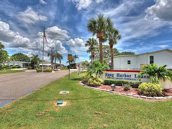 Ready to live in FL? Enjoy this spacious 2 bedroom/2 bath Homes of Merit with lots of great features...double driveway, large enclosed porch for easy entertaining, plus inside laundry leaving plenty of room in the utility room for storage. Snug Harbor Lakes is a 55+ community with plenty of activities and amenities including a pool, clubhouse, fitness, low HOA fees, and so much more. A must see!