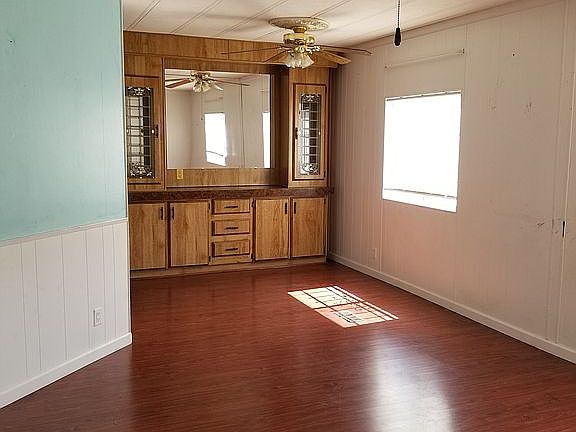 Manufactured Home for Sale, 3 bedrooms 2 bath. No HOA, nice size yard with low maintenance landscaping, one orange tree, solar clothes dryer, and storage shed. 2 car covered tandem carport. Covered patio on the westside. Inside you will find an open floor plan, dining room with a built-in hutch, kitchen with a gas stove, lots of counter space, and cupboards. The window above the sink. Inside laundry room with washer, dryer hook-ups with a built-in desk and cupboards.