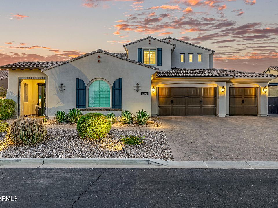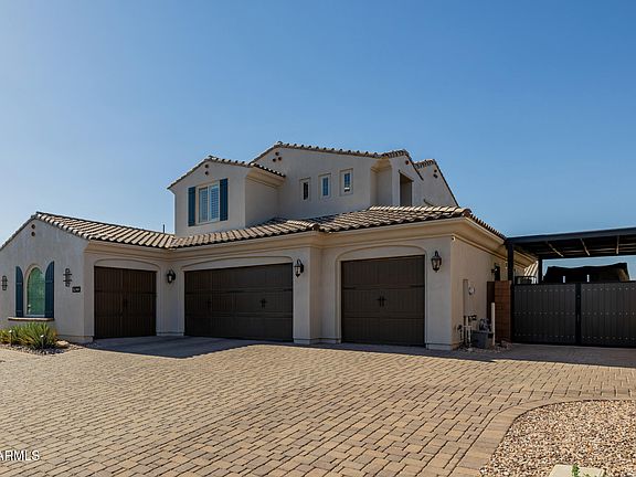 Luxury living in beautiful Northeast Mesa GATED neighborhood! This luxury home sits on over ¼ acre in quiet cul-de-sac w/ MTN views. Home has been completely remodeled with no expense spared. Gourmet kitchen has quartz counters, custom crown-molded cabinetry, designer backsplash, premium stainless appliances & more. Wood floors, plantation shutters, cantera accents, custom doors & modern plumbing/electrical fixtures elevate every space. Master has sitting room & huge walkin shower & freestanding tub w/ limestone. Resort like backyard features a PebbleTec pool w/ waterfall, diving platform & slide, firepit, built-in BBQ, lush lawn, & COVERED RV/boat parking that easily fits a surf boat. Excellent location minutes from 202, lakes, river, & trails! Custom touches throughout! Click link here- Amazing open floorplan has 5 bedrooms, 3.5 bathrooms, den, downstairs game room that also could be a formal living room, and kitchen opens to huge great room. There is a downstairs ensuite bedroom/bathroom. Master bedroom upstairs with large sitting room that is currently used as a home gym. There are 3 additional bedrooms and 1 bathroom upstairs.