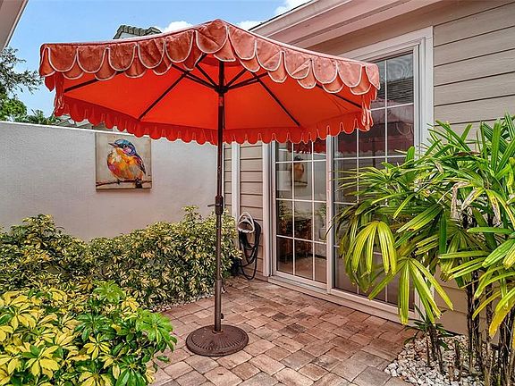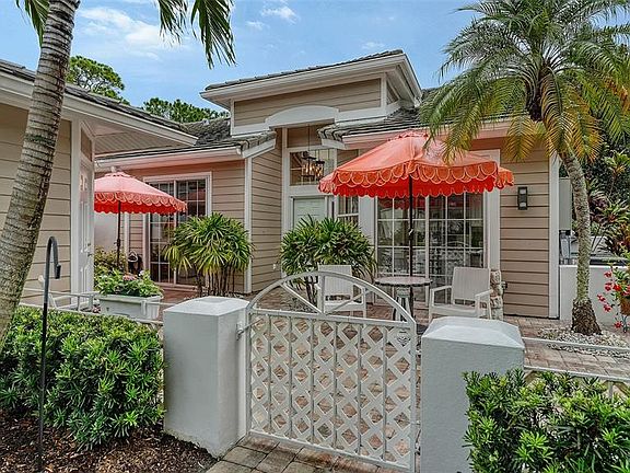 This move-in ready, updated, and impeccably maintained 2-bedroom, 2-bathroom villa with a den and 1-car garage featuring custom built-ins is located in the award-winning University Park Country Club. Offering the open Hibiscus floor plan, the home sits on a premium lot with landscaped privacy along the back and side, creating a tranquil and inviting setting. A beautifully landscaped yard and welcoming courtyard lead to the front entrance, which features a retractable screen door, glass sidelight, and transom windows. Inside, the hallway’s architectural details open into a bright and airy main living area, where newer luxury vinyl plank flooring flows throughout most of the home. The RENOVATED eat-in kitchen is both stylish and functional, with granite countertops, a tiled backsplash, a raised breakfast bar and a counter-height bar with seating. Recessed and under-cabinet lighting add warmth, while a double slider opens to a private patio with a gas hookup for grilling. The kitchen also features a REFRIGERATOR new in 2022, along with a WASHER & DRYER replaced in 2023. The open living and dining room combination extends into an all-weather room through new hurricane-rated triple sliders, which then open to a screened lanai and outdoor stone patio. This seamless flow of indoor and outdoor living spaces captures the essence of Florida living. The spacious primary suite offers a private sitting area and a RECENTLY RENOVATED ensuite bathroom, complete with dual sinks, a zero-entry walk-in shower, and a large walk-in closet with a custom storage system. The guest suite feels like a retreat, with its own double slider leading directly to the courtyard and access to a bathroom with a tub and shower combination. The den or office features custom built-in shelving and desk, along with double sliders that also open to the courtyard, making it a bright and functional workspace. ROOF replacement in 2016, HOT WATER HEATER in 2023 and a whole-house Generac 18 KW GENERATOR in 2025 offer continuous peace of mind. Whitebridge Court is a sought-after neighborhood within University Park Country Club, celebrated for its maintenance-free lifestyle, community pool, and proximity to the Club’s amenities. This villa combines comfort, thoughtful updates, and timeless appeal in one of Sarasota’s most desirable gated communities. University Park Country Club is consistently ranked one of the top courses in Florida featuring 27 holes of championship golf; tennis and pickleball; fitness center, croquet – as well as an array of social and group activities. Just a short drive outside this peaceful enclave is downtown Sarasota, with shopping, arts & theatres, museums, dining and entertainment, top-ranked healthcare, beaches and SRQ International Airport.