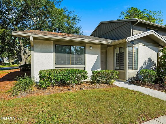 Discover low-maintenance living in this exceptionally maintained end-unit. The 2/2 residence offers privacy and comfort as a single-story unit with no neighbors above. Step inside to an inviting living area that flows seamlessly from the dining area, living room and out to your private patio, the perfect backdrop for morning coffee or unwinding at the end of the day. Both bedrooms are generously sized, and the two full bathrooms provide convenience for guests. HVAC and ducting were replaced less than two years ago, along with the microwave and dishwasher, and updated showers. The unit is just a minute walk to the community pool, and parking is never a concern, as the unit includes two covered carport spaces plus an assigned parking space directly in front of the home, offering exceptional convenience and value. Ideally situated in the heart of Baymeadows, you'll enjoy easy access to shopping, dining, I-95, and Jacksonville's vibrant Southside amenities.