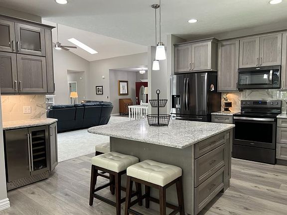 WOW! This home starts with great curbside appeal and impresses as you enter into new updates through-out. A spacious living area with gas fireplace opens into the completely remodeled kitchen and dining area. This kitchen offers a large center island and is perfect for entertaining any size gathering. All 3 Bedrooms are designed with space to lounge for relaxing Me Time. The private master suite features extra space for seating or desk, main room closet, a bath with double sinks, tub, separate shower and walk-in closet for that clothes lover. An open stairway takes you to the lower-level walk-out with family room and bath. Custom design the unfinished areas to fit your needs. A 3-stall insulated heated garage and Trex decking complete this must-see listing. Canadian Lakes amenities include, Free golf on 2 of the 3 courses, All sports boating, swimming, fishing, pickleball. Call today for your private tour.