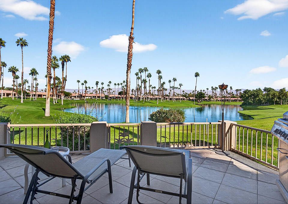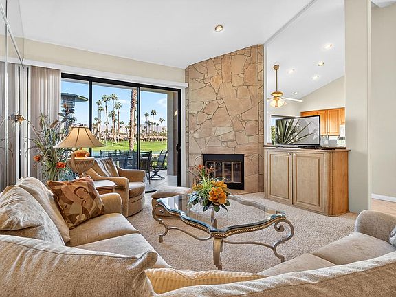 Welcome to Palm Valley Country Club! This popular Sycamore floor plan offers 3 bedrooms and 3 baths with an open, light-filled layout designed for comfort and style. The spacious living and dining areas feature high ceilings, abundant natural light, and seamless indoor-outdoor flow to the private patio overlooking the golf course. The two primary suites each include an en suite bath, while the third bedroom is currently used as an office or den, offering flexibility for work or guests. The kitchen opens to the living area, perfect for casual entertaining or relaxed desert living. Enjoy morning coffee or evening sunsets on the patio with peaceful fairway and mountain views. Palm Valley Country Club is a premier guard-gated community featuring 46 pools and spas, two Ted Robinson-designed 18-hole golf courses, a world-class fitness center, tennis and pickleball courts, and a stunning 100,000 sq/ft. clubhouse with dining and social events. Ideal as a full-time residence, seasonal escape, or investment opportunity in the heart of Palm Desert.