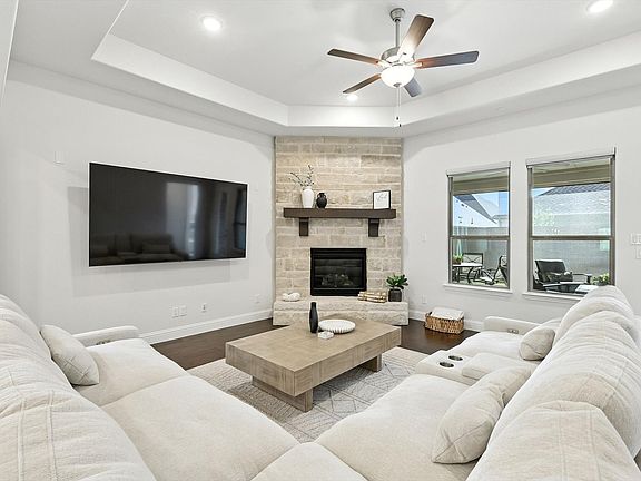- Fireplace features: Decorative, Electric, Gas, Glass Doors, Gas Starter, Living Room, Masonry, Raised Hearth, Stone