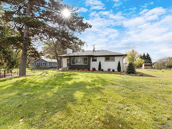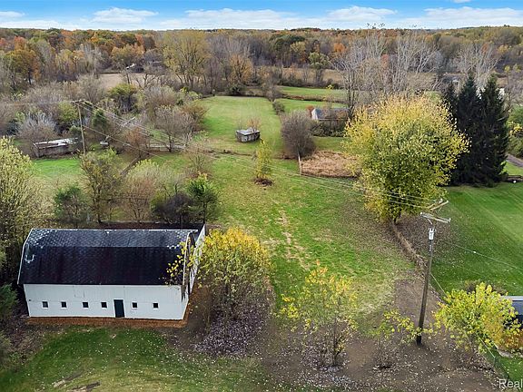 CHARMING UPDATED BRICK RANCH ON 10 ACRES IN NORTHVILLE~Nestled on 10 acres of beautiful, mostly cleared & fenced land, this adorable home offers the perfect blend of country living and modern comfort. This rare find is zoned agricultural so whether you're dreaming of a quiet retreat, horse farm, farming or simply more room to breath, this unique property is ready to welcome you home w/endless possibility's. The property features a spacious two story barn w/nine horse stalls, multiple open pastures, trails & plenty of serene space for you or your horses/chickens to roam. Step inside this cute & cozy home and you'll find a fully updated 3 bedroom, 1.5 bath gem that's truly a breath of fresh air. Some of the updates include new flooring, trim, interior doors, modern light fixtures, hardware & fresh paint throughout. The great room impresses w/vaulted ceilings, recessed lighting, a large picture window that floods the room w/natural light & a cozy gas fireplace perfect for chilly winter evenings. The kitchen has been completely remodeled w/white shaker cabinets, quartz countertops, a stylish tile backsplash, brand new stainless steel appliances & a reverse osmosis system at the sink. Stylish mudroom w/a custom built in cubby & coat nook adds both charm & functionality. The basement is clean & dry, featuring newer glass block windows, a sprayed ceiling & painted flooring making it a perfect flex space for additional living space. Step outside to your new trex deck providing the perfect spot to relax & enjoy your morning coffee while taking in the peaceful surrounding of your very own 10 acre parcel. Some additional updates include: new plumbing, updated electrical panel, newer A/C, HWH, furnace, blown in installation, ducts have been cleaned, new landscaping & exterior paint & two new septic tanks. Nothing left to do but enjoy your acreage. Northville mailing, low Salem Twp tax's & award winning South Lyon Schools are all an added perk to this delightful retreat~