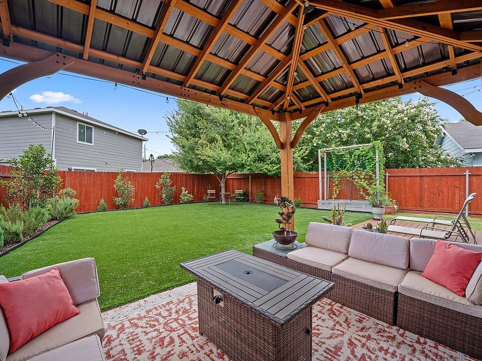 Low-maintenance backyardDeck for gatheringsLush green spaceAbundant natural lightFour bedroomsCovered patioUpgraded guest bathroom