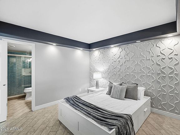 Beautifully updated ground-floor condo offers the perfect blend of comfort, modern design, and unbeatable location. The open floorplan is ideal for entertaining, featuring a sleek kitchen with stainless steel appliances, modern shaker cabinetry, and a large island with seating. Enjoy the warmth of wood-look tile flooring and contemporary lighting throughout. Both bedrooms are spacious with en-suite bathrooms, one enhanced by a chic accent wall for added character. Step outside to your covered patio, perfect for morning coffee or evening relaxation. Community amenities including a pool, spa, fitness center, clubhouse, & laundry facilities. All this within walking distance to premier dining, shopping, nightlife, and recreation that make Old Town one of Scottsdale's most desirable locations.
