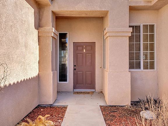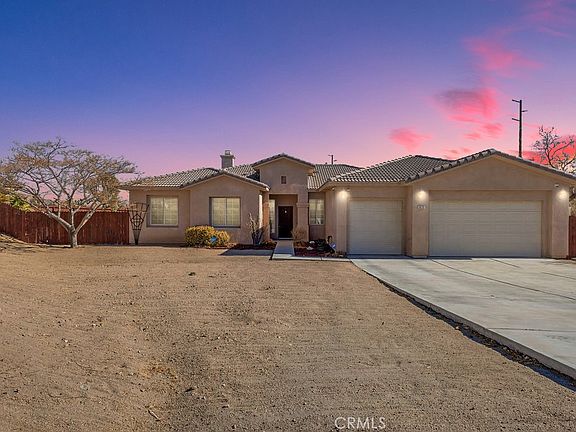 Step inside and be greeted by high ceilings and a thoughtfully designed interior featuring a combination of wood laminate and tile flooring for effortless maintenance. The spacious living room, complete with a cozy gas fireplace and custom wood blinds, creates the perfect ambiance for relaxing evenings. The heart of this home is its well-appointed kitchen, showcasing stainless steel appliances—including a refrigerator, dishwasher, oven, and microwave—granite countertops, a breakfast bar, and a charming dining nook. Natural wood cabinetry provides ample storage, and a built-in desk area adds functionality. The luxurious primary suite boasts its own private exit to the serene backyard, an en suite bathroom with dual sinks, a large oval soaking tub, an oversized walk-in shower, and a walk-in closet. A flexible space off the main living area can be used as a formal dining room or family room, offering versatility for your lifestyle. Each bedroom features custom wood blinds and laminate flooring, while the additional bathrooms include modern fixtures, full tub and shower enclosures, and thoughtful design. The laundry room is fully equipped with cabinetry, a utility sink, and included washer and dryer. The outdoor space is a true retreat, with a fully fenced backyard featuring a covered patio with ceiling fans and recessed lighting. Enjoy breathtaking mountain and desert views, majestic Joshua trees, and boulder landscaping. A fire pit and sweeping driveway provide the perfect setting for outdoor entertaining, with room for RV parking if needed. The exterior exudes curb appeal with a tile roof, stucco finish, and dual-pane windows. The 3-car garage offers ample storage and parking. Located in a fantastic neighborhood, this home is close to all the best Yucca Valley has to offer. Don’t miss this rare opportunity to own a slice of desert paradise—schedule your showing today!