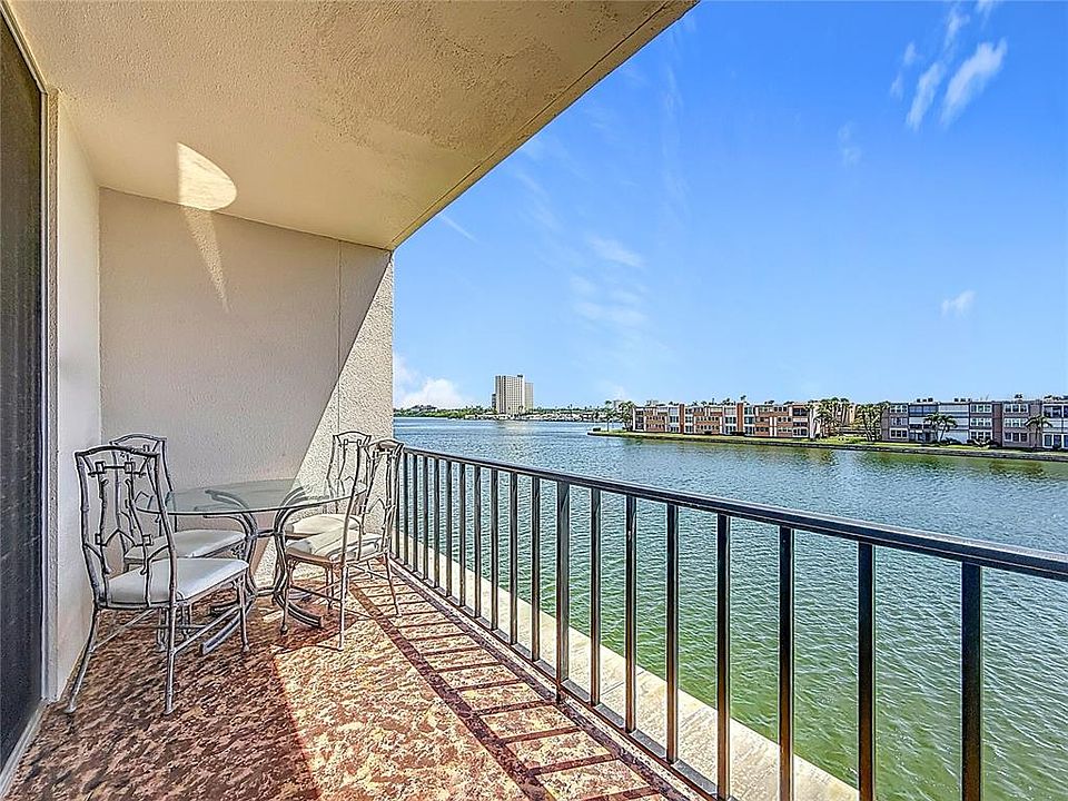 PRICE IMPROVEMENT - Waterfront Condo in Bay Island 55+ Gated Community! Bay Island is a boater's paradise with a private marina (slips available for purchase/lease). Short-Term Rentals Allowed – 12 Times/Year, 3 times a year under 30 Days! Resort-style amenities include: multiple pools, hot tubs, 1.5-mile waterfront walking path, tennis & pickleball courts, shuffleboard, waterfront clubhouse with billiards, fitness center with his and her gyms along with saunas, game rooms, and tiki huts with BBQ grills. Enjoy stunning 3rd floor views of Boca Ciega Bay from this freshly painted and maintained 2BR/2BA split-plan condo in sought-after Bay Island. Watch the dolphins, manatees & coastal birds right from your private balcony! Interior features are the spacious bedrooms, one with walk-in closet and the condo has convenient access, as it's just steps from the elevator. For convenience, the unit includes its own washer and dryer, with additional building-owned laundry facilities on the 4th floor. A covered carport located right in front of the building for easy access. No interior damage from recent Hurricanes Milton or Helene, only the community exterior grounds were affected. Pre-home inspection and 4-point inspection completed by Seller and is available for review. Prime location close to beaches, Downtown St. Pete, Central Ave., dining/shopping, and easy access to Tampa & St. Pete-Clearwater International Airports. HOA fee includes: cable, internet, water, sewer, trash, exterior maintenance, flood insurance, landscaping & 24-hour gated security. Come live the Florida lifestyle – active, convenient & carefree!