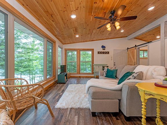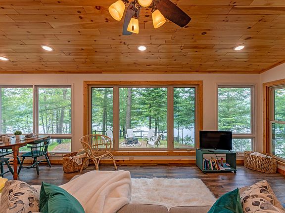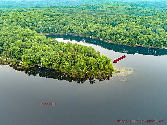 Your own secluded peninsula awaits on quiet, 43-AC, Nose Lake. Surrounded by an amazing panorama of 607’ water frontage on 3 sides, you will have scenic views of the lake from almost everywhere in the home. End of the cul-de-sac privacy and forested solitude gives this year-round 2BR/1BA cabin on 1.34 acres great vacation rental potential. Home interior has been tastefully remodeled with kitchen and bathroom updates, knotty-pine ceiling, flooring, electrical,and fresh paint. Newer roof. For your move-in ready convenience, home is being sold turn-key with all furnishings and appliances. Excellent cell service! You will also enjoy the cozy campfire area with a lake view. Included gas grill is connected to the main propane for the home. Head down the gradual approach to the lake for some bass and pan-fishing action. 2 sheds provide storage for your extras, and there is a covered wood shed. Conveniently located between Tomahawk and Rhinelander.