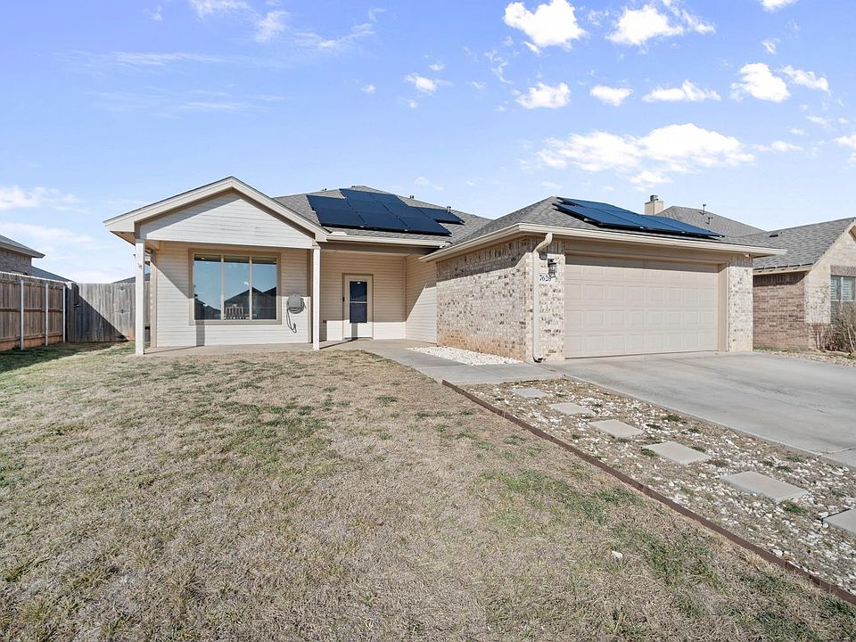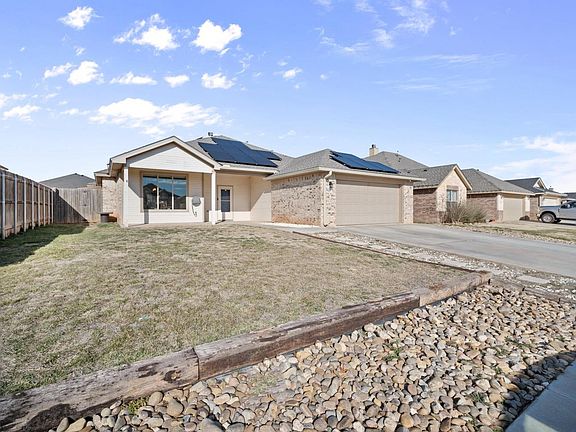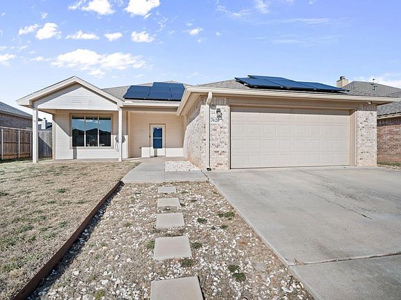 You are going to love this well taken care of home. Very open spacious concept welcomes you with a very warm feeling. As soon as you walk in, you see the nice fireplace with hearth and see the large living space with a view of the covered patio and above ground swimming pool. The kitchen has lots of cabinet space, pantry, country sink, stainless steel appliances, including a gas stove, island with breakfast bar and very nice size dining/breakfast eating area. Isolated master with separate tub and shower, double sinks and a walk in closet. The other 2 bedrooms are on the other side of the home and share a bathroom. Enjoy the day or evening on the awesome covered patio and enjoy the pool on those hot west Texas day. There is still room in the backyard for a trampoline. This home has Solar Panels that will really help for paying your bills on these hot days. This is a great home that you will want to see. Oversized 2 car garage as well. This home has an assumable loan, 2.875%