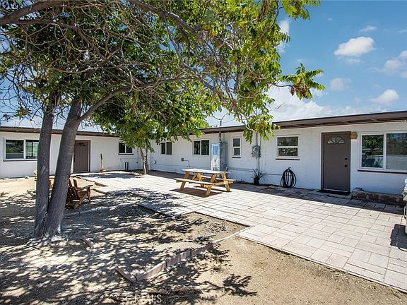 Welcome to this stunningly renovated home in the desirable Yucca Corral Acres, offering a perfect blend of modern amenities and serene desert living. Situated on a sprawling 1-acre lot, this turnkey property features a 1286 sq ft main house with 2 spacious bedrooms, den (perfect for a home office retreat or your own speakeasy), and fully updated bathroom. The 750 sq ft guest house – attached to the main house via the garage and with a private rear entrance - offers a spacious living area with 1 bedroom, den or possible 2nd bedroom, and full kitchen. This unit has also been fully renovated and can generate immediate rental income to offset your expenses or host friends and family. Both boast a brand new 30-year composition roof, new flooring throughout, and a newly renovated kitchens with updated appliances, stylish cabinets, fixtures, countertops, and backsplash. The living areas are bright and open, with large windows that let in plenty of natural light, providing a cozy and welcoming atmosphere. Fresh interior and exterior paint enhance the home’s aesthetic appeal, making it truly move-in ready. Additional features include an updated main electrical panel, a one-car garage, a 2-car carport, and a connected sewer for modern convenience. At the rear of the property, an additional structure with bathroom lends itself to a future bunkhouse, caretaker quarters, yoga/art studio, home office, or otherwise. The expansive lot offers endless possibilities for creating your own desert oasis, with ample space for a garden, pool, or additional structures. Enjoy outdoor living with a spacious patio area, perfect for entertaining or relaxing under the stars. The property also includes a fenced-in area for animals with chicken coop already in place, and is zoned to allow for goats, chickens, and horses, to make your homestead dreams come true. Located in a highly sought-after neighborhood, this home is just minutes away from local shopping, dining, and entertainment in Yucca Valley, with easy access to Highway 62 for convenient trips to Joshua Tree National Park and the Coachella Valley. Hike by day via the trails at the rear of the property and unwind by night via nearby local hot spots The Tiny Pony, Copper Room, or Pappy and Harriets. Don’t miss this rare opportunity to own a beautifully updated home in a tranquil and picturesque setting, offering the best of Yucca Valley living.