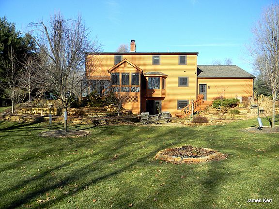 Important Note: "Zestimate" (Zillow's estimate) is based off 2,800 sq. ft. which is inaccurate for this home. Custom built 5 bedroom 4 full bath country estate boasting over 4,000 sq. ft. with an open floor plan. Find comfort with 3 fireplaces, a solarium w/passive solar heat, and a finished walkout w/plumbing for an additional kitchen/mother in law suite. Nestled in the Olentangy River Valley back a private drive on 5.5 acres with mature landscaping and terraced gardens. 2.5 acres of fenced pasture with barn and corral. This unique home is a private retreat. Agent related to seller