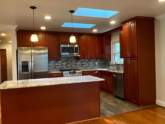 Recently renovated top to bottom. North Springfield 2-level Single Family Home on 0.47 acre landscaped lot with approximately 2520 sq ft living space. 2 real wood fireplaces, 2 full kitchens, 4 full baths, 5 bedrooms. Main floor: Large kitchen opens to Family room and French door opens to the deck over looking beautiful natural backyard. Tile in kitchen, kitchen island, eat-in kitchen with sky lights, granite countertops, three bedrooms and two full baths. Large lower level with separate entrance, wood-look porcelain tiles, recessed lighting, an additional full kitchen, large family room with fireplace and 2 large bedroom with 2 full shower bath. Extensive storage area, washer/dryer. Exterior includes one over size garage, new upper level rear deck, wood and tile patio, and beautiful natural backyard. Schools all within easy 1.5 mile distance. Easy access to the highway (495/395/95), Braddock shopping center, and Springfield Town Center.