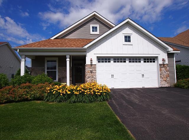 Resort-at-home living and you won't have to wait to build. Backs up to pond and wetlands and close to clubhouse. Four Seasons is an active adult (55+) community offering snow removal, lawn care, fabulous club house, pools, courts, exercise & activities.
