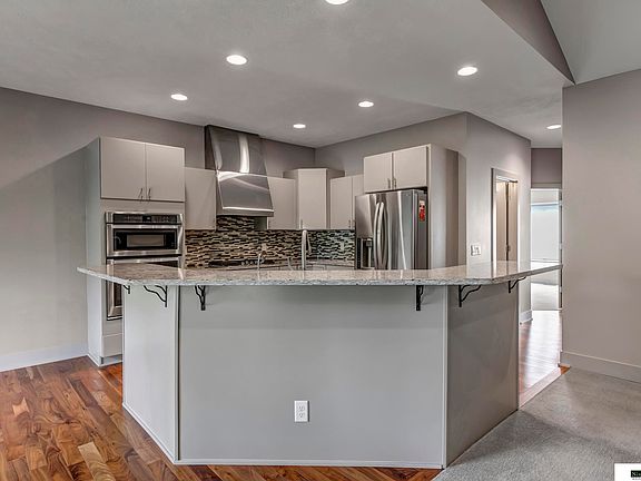 What a home! Pre-inspected. Welcome to this exceptionally maintained one-story home that backs up to acreage properties in the Grand Terrace subdivision with five bedrooms, three bathrooms, and a three-car garage. Walk through the covered front porch area inside to the open floor plan. Cathedral ceiling, warm earthy paint colors, gas fireplace, well-appointed kitchen, three bedrooms up, and a first-floor laundry room. Step down the wide staircase to the finished basement with a large media room, wet bar, and two additional bedrooms. Of course, there is a primary bath tile shower, kitchen pantry, and water softener. Outside, note the front patio surrounded by a decorative retaining wall, covered rear deck and patio, fire pit area, and black iron backyard fencing. Schedule your showing today to see all of this and more.